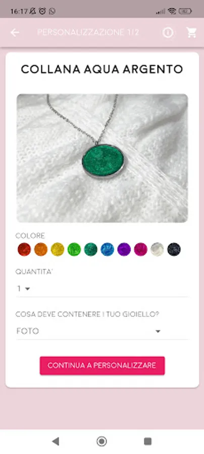 1) Choose the type of jewel (Pendant, Bracelet, Ring, Keychain...)