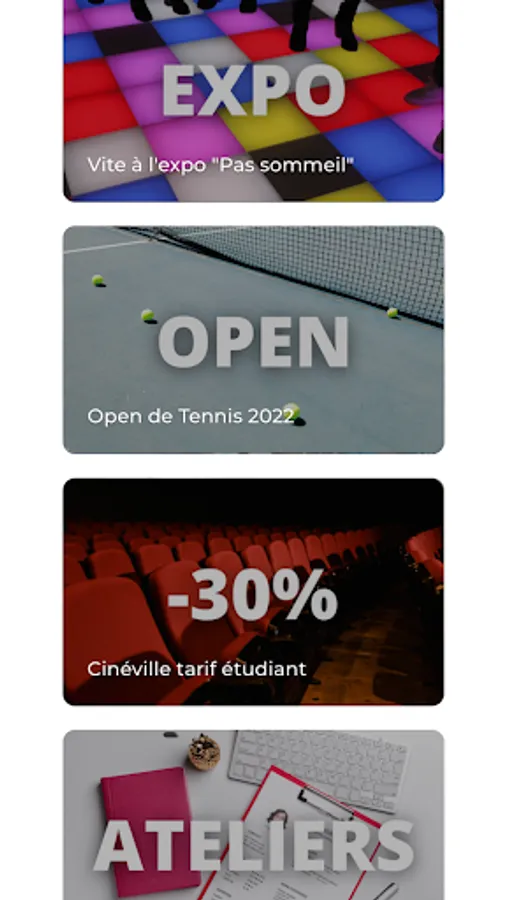 All the news, events and good deals of the moment filtered according to your centers of interest and your city of study.