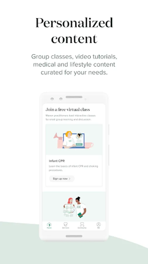 Daily tips and virtual classes: Exclusive MD-approved resources and provider-led classes, from Anxiety Management to Newborn Care. (Employer-sponsored accounts)