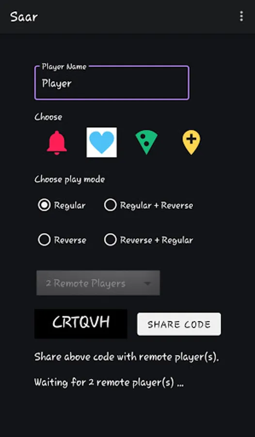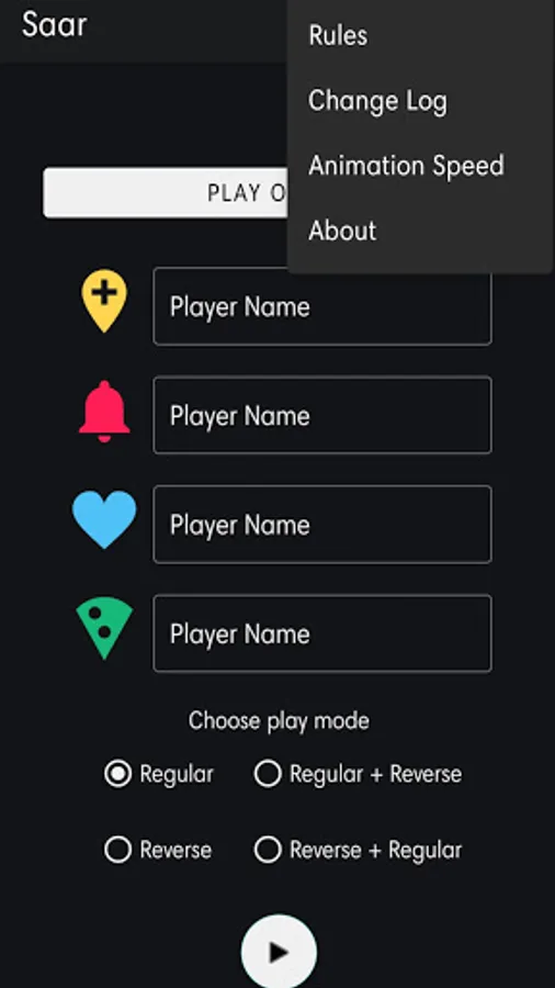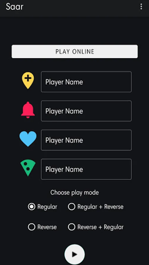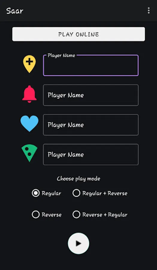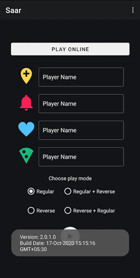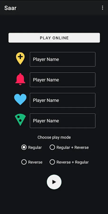 “Saar” is a traditional Indian board game, similar to the popular “Ludo” game, but has slightly different rules. The game can be played by 2-4 players. Each player has 4 pawns which need to be moved from starting position to final position. The game has 4 play modes based on the direction in which pawns move. Good game for having some fun with friends and family.