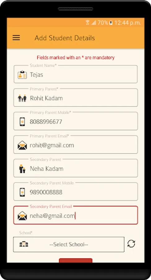 Tracko helps you create, update and maintain student information easily including student details and parent details.