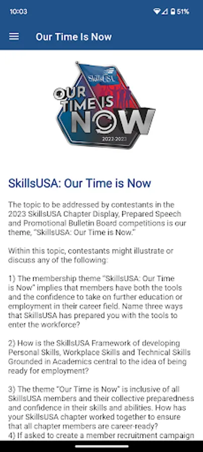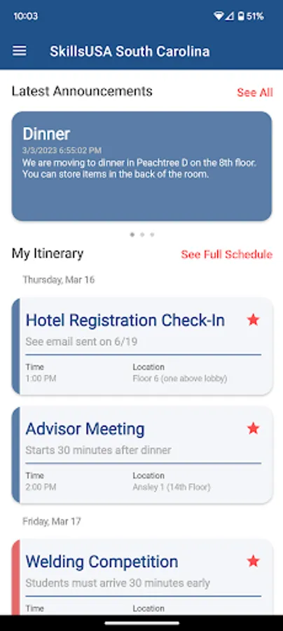 Browse the event agenda, competition schedule, the student officers, and more with the new SkillsUSA SC App!