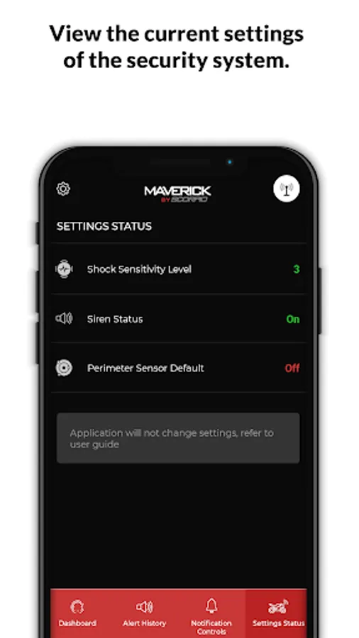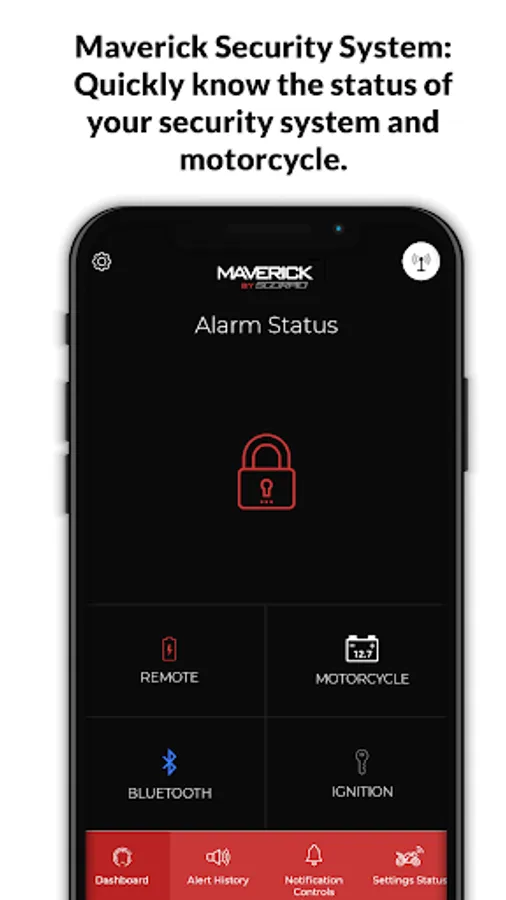 Quickly know the status of your security system and motorcycle.