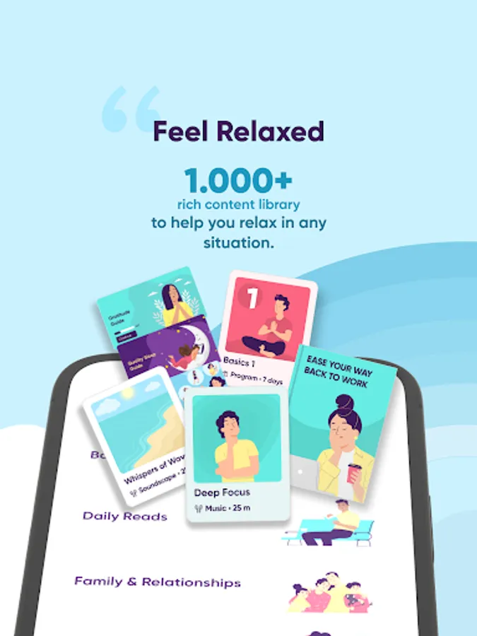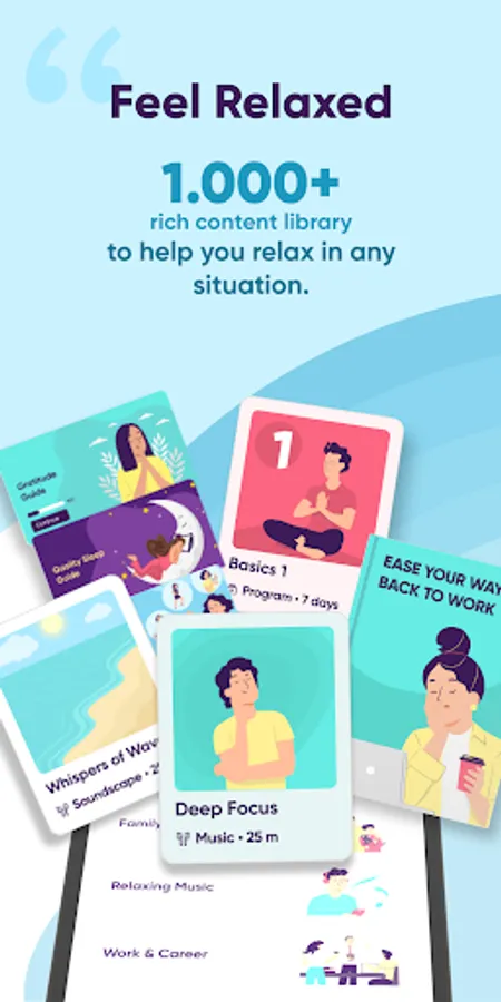 ✔️ More than 700 thematic Meditations and Programs on hundreds of topics you encounter in daily life for relaxation, focus and discovering inner happiness.