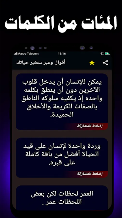 Sayings and cross will change your life wonderful application by hundreds of sayings and expressive words and beautiful words and wonderful words There are also sayings to Atma history and a lot of Msjat expressive and beautiful Bostat application more than wonderful wonderful you like.