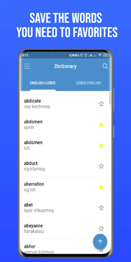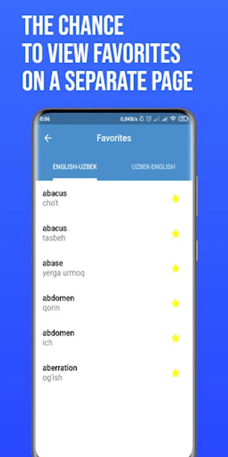 • Favourites - to help you quickly access frequently searched words