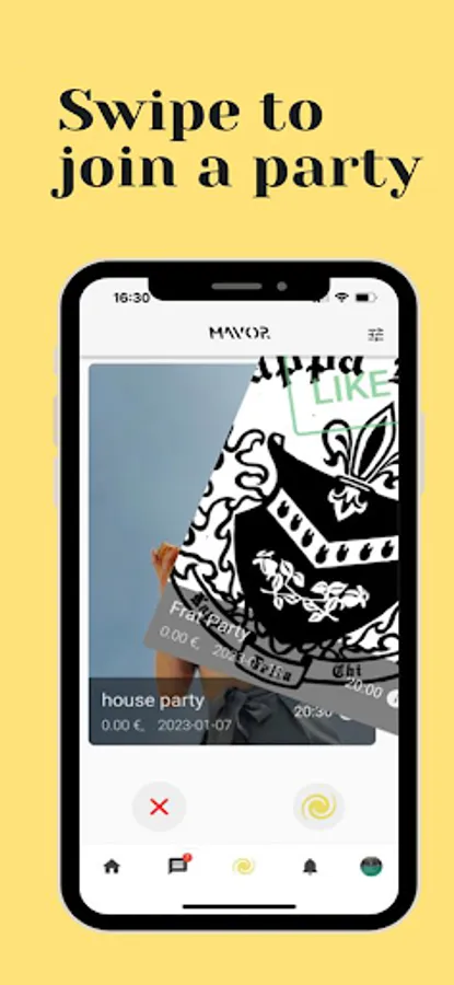 Participate in events organized around you by Mavor users, you have the choice by swiping them, right if you want to participate in the organized event or swipe left if you are not interested. You have the choice if you want to go to an apartment party, a football match, a makeup party or even a Poker night, there is something for everyone!