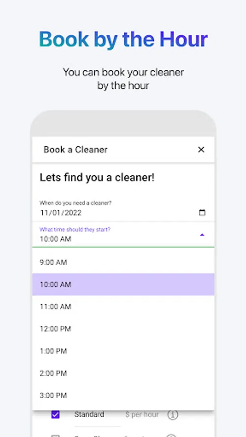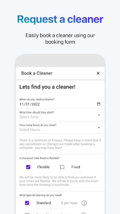 The name of the cleaner will be added to the booking before they arrive, so you can be sure to be opening the door to the right person.
