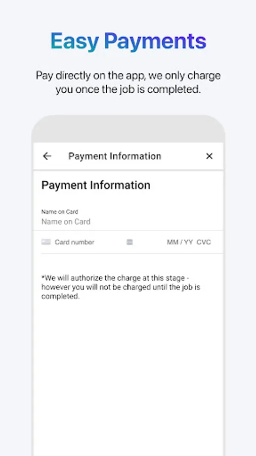 #2 Add your payment, don’t worry we don’t charge you until the cleaning assistant is done