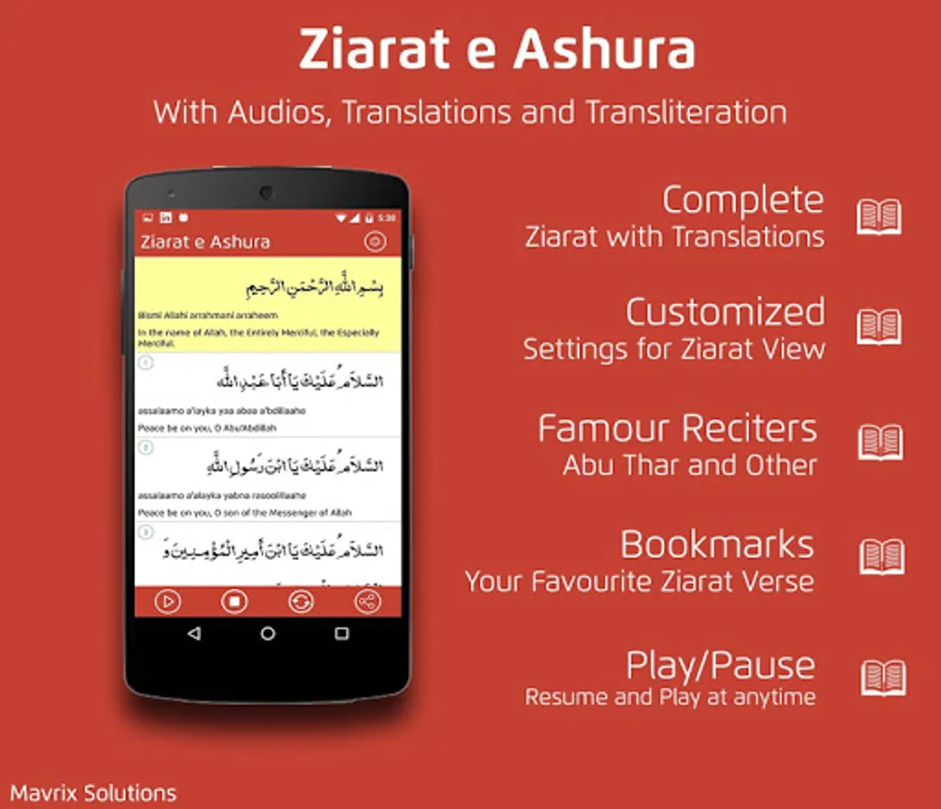 تطبيق زيارة عاشوراء، يوفر لك زيارة عاشوراء مكتوبة وصوتية بصوت اكثر من قارئ