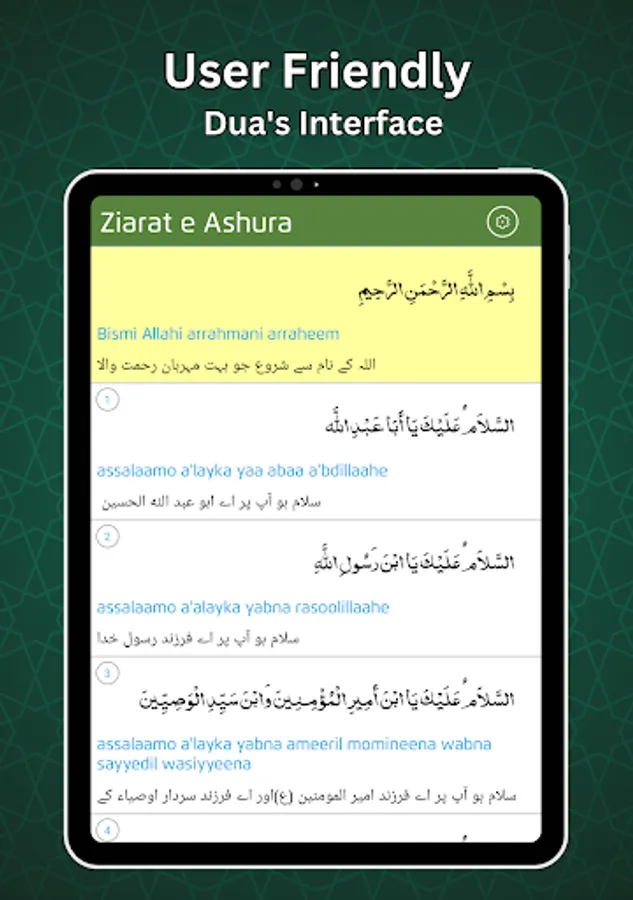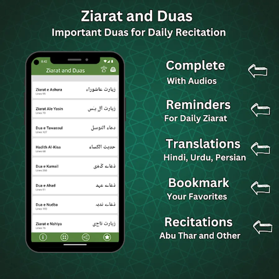 Collection of complete ziarat and duas for Shia community with English translation and transliteration including ziarat e Ashura, Ziarat e warisa and other. All Ziarat and duas are completely free with audio playback with each Arabic text and English text that is easy to read and with audio.