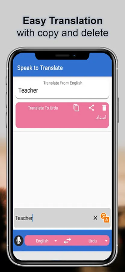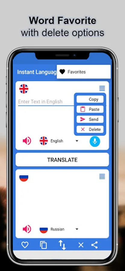 Dictionary in all languages: - Instant Language Translator app is not only a translator app but also provides the option of dictionary in all languages of the world. You just write your desired word or sentence of the any language of the world and it will provide you the translated meaning or sentence in your desired language.