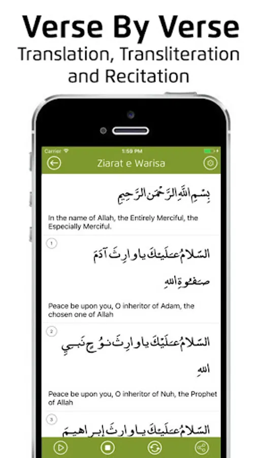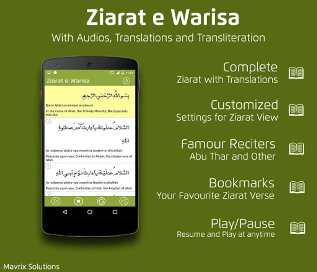 Complete Ziarat e warisa with English translation and transliteration. Ziarat e warisa is completely translated With Audio playback with each Arabic text and English text that easily appear on your screen and you can easily share and navigate around the screen.