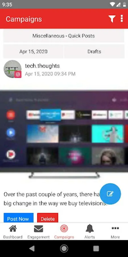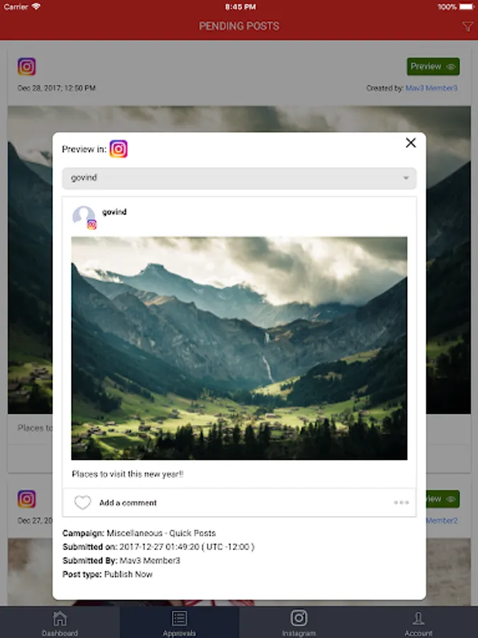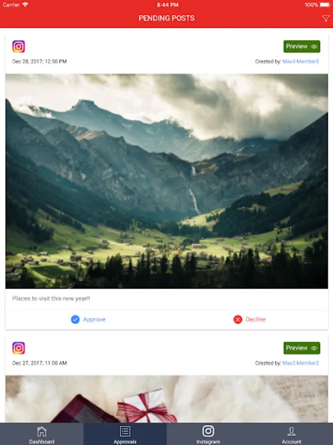 - Receive Push notifications for scheduled post, pending approvals and network token expiry