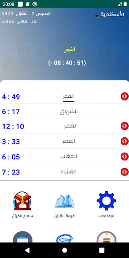 The program Aofarhma prayer times Egypt on a daily basis and without internet: dawn, sunrise, noon, Asr, Maghrib, dinner. This program is a companion Muslim daily in the provision of prayer times Egypt. There is no need for your site in order to get meeqaats. In addition to the timings of the prayer in Egypt Valttbaiq offers Muslims the following: