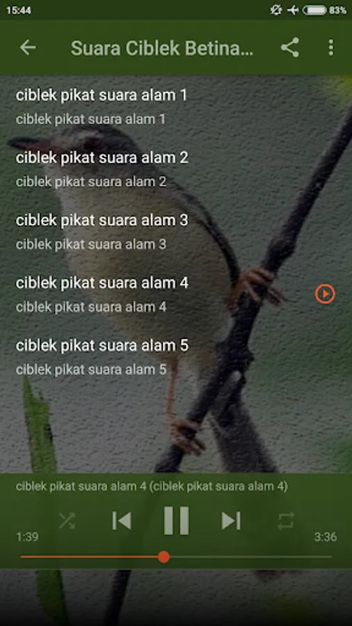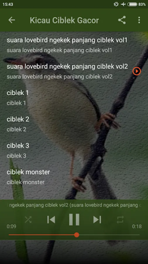Powerful Ciblek Bird Sounds: a collection of ciblek chirping birds for powerful charms. In this one application there are a lot of the most powerful and complete collection of the lure sounds of the ciblek bird. So for those of you who are looking for mp3 sounds of ciblek birds to captivate, then you can try this one application. This app can be played without internet so it is very easy to play.
