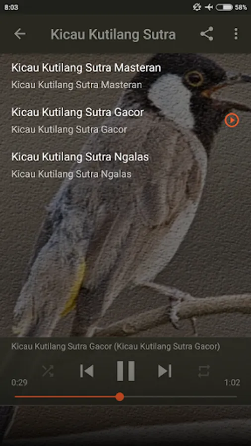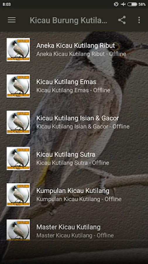 Sound of a Bird with a Noise: A variety of birds chirping a noisy tree to attract a mp3. For those of you who like the beautiful and melodious sound of finches you can install and use this one application. In this application a large collection of noise finches noisy birds for powerful draws that can be played offline.