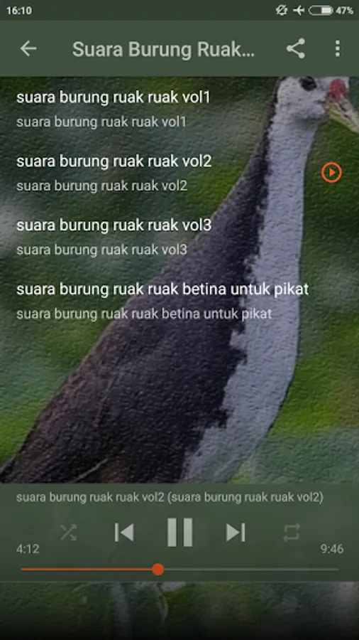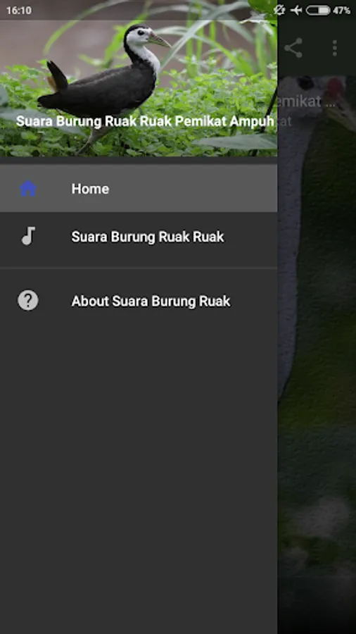 Sounds of Bird Ruak Enchanting Enchantment: a collection of alluring sounds of ruak bird ruak mp3. In this application you can find a collection of bird voices croaking the most effective and complete lure. This Powerful Bird Voices Enchantment Enchantment offline app can be run without having to spend the data package, because it can be played offline.