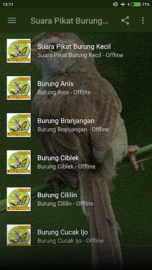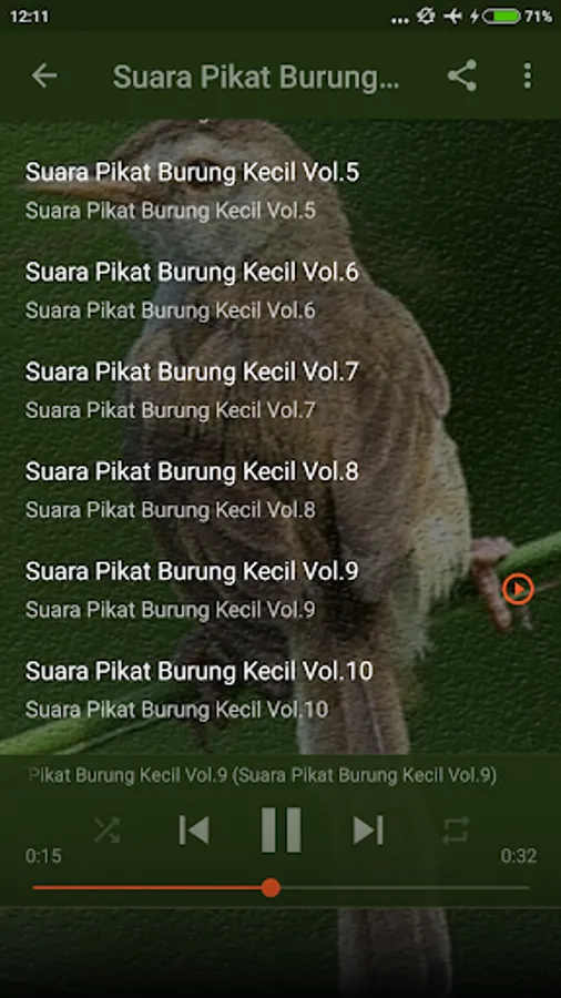 The Most Powerful Small Bird Attract Sounds Mp3 Offline: a complete collection of long duration lure sounds. Come on, those who are looking for a wide selection of small bird sounds to attract the most complete, then you can install this one application. In this app you can play various kinds of powerful little bird attracting sounds complete offline without having to be connected to the internet, it's really very easy to use.