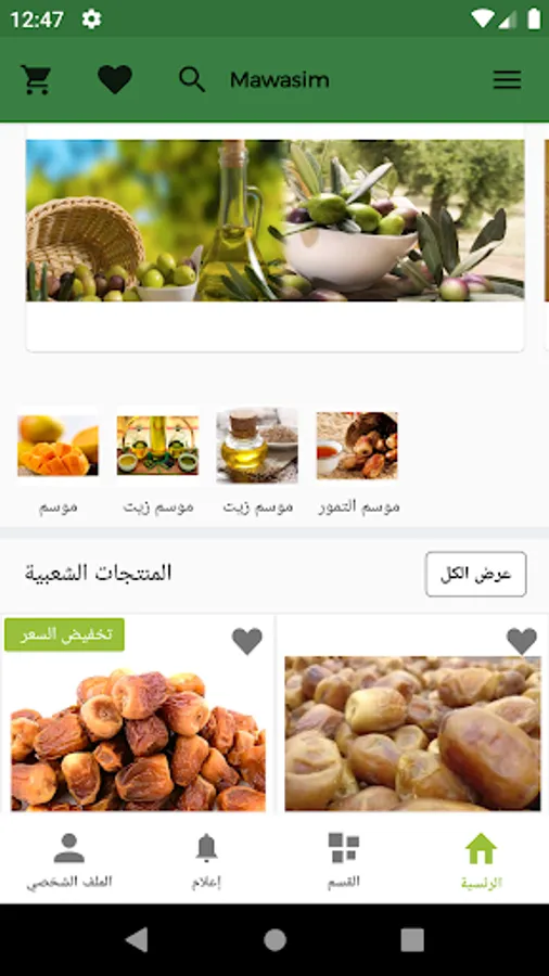 تطبيق تمور / متجر مواسم السعودية هي منصة الكترونية لبيع اجود انواع التمور والزيوت في المملكة العربية السعودية بأفضل الأسعار مع خدمة الشحن لجميع مناطق المملكة مع التجربة قبل الشراء و ضمان الاسترجاع او الاستبدال في حال كان التمر غير مطابق للمواصفات المذكورة او تالف وذلك لثقتنا التامه ب اهتمامنا بجودة