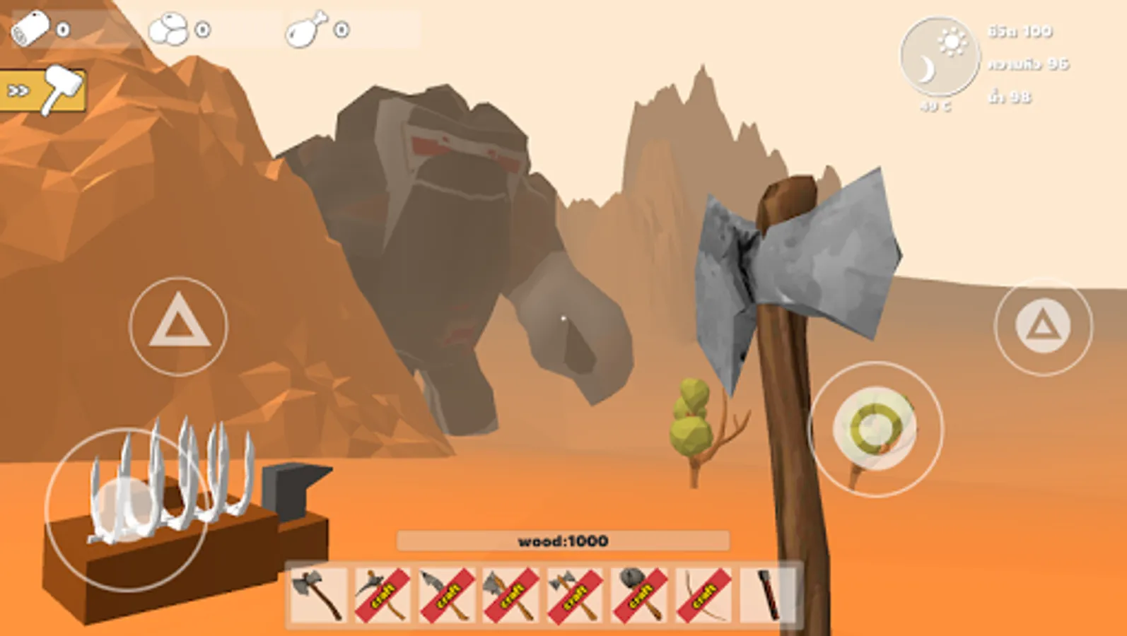 Survival in the desert In the arid golden sandy area. New size map Monster Golem You are ready to fight with the endless building. Protect yourself Weapons of the Stone Age in various ways to harvest resources such as wood, stone, building facilities, you need to keep water forever, power down, weapons, such as archers, to manage the desert hunting, which is very rare, you should build a wall.