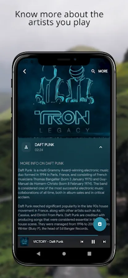- Artist information from the internet. This allows you to see more information about an artist you are listening to.