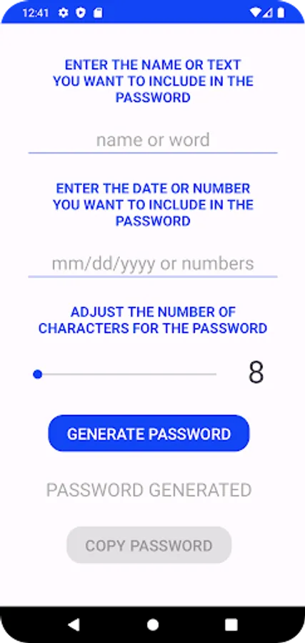 User-Friendly Interface: The app features a simple and intuitive interface, making it easy for users of all levels of technical expertise to navigate and generate passwords quickly. The app provides clear instructions and helpful tips to assist you throughout the password creation process.