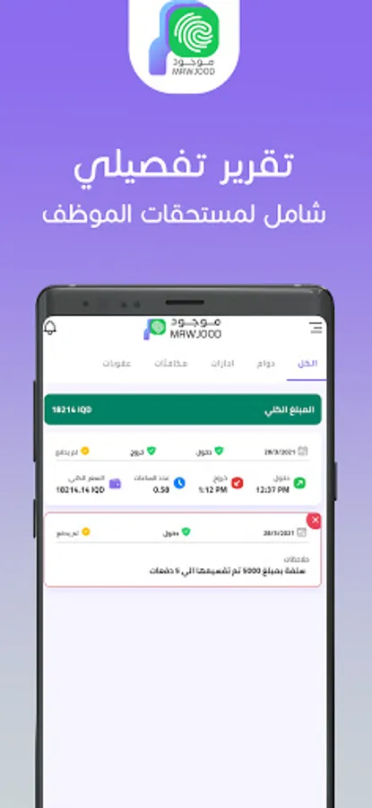 وامكانية مشاهدة تقارير تفصيلية لكل حركة من دخول و خروج و عطل واجازات