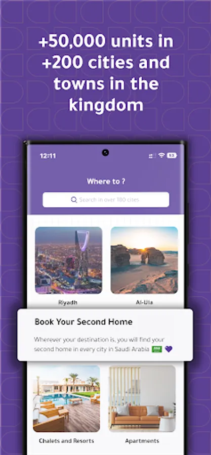 We cover more than 200 regions & cities in the Kingdom, which means you could book housing rent for you in Riyadh, Jeddah resorts, Jeddah beaches, Taif resorts and other places that do not even cross your mind, and live the arab culture at its best!