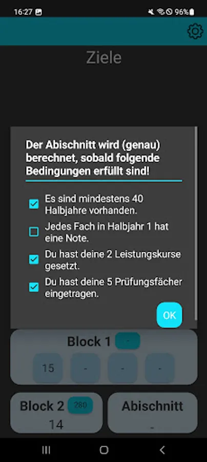 All grades are included according to the usual rules of contribution in Saxony and the Abitur average is calculated as precisely as possible. In addition, with AbiSax you can set subject and semester-specific goals. This will then automatically calculate which grade you need in the next exam/LK in order to fulfill this. AbiSax shows you, specifically tailored to you, how many half-years a subject contributes to your Abitur average. Many explanations directly in AbiSax will show you how to add subjects and grades, make a subject your advanced course or set a final grade. Are you a student in Saxony and currently in high school? Then with AbiSax you have found the perfect app to manage your grades!