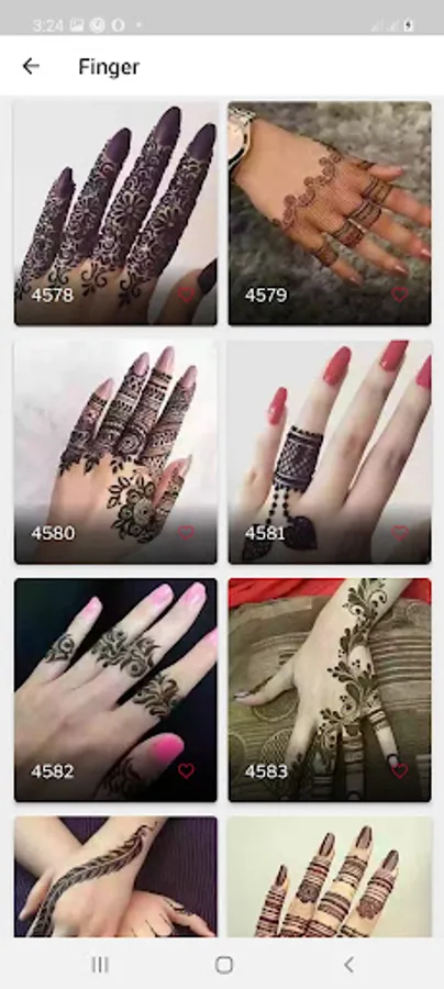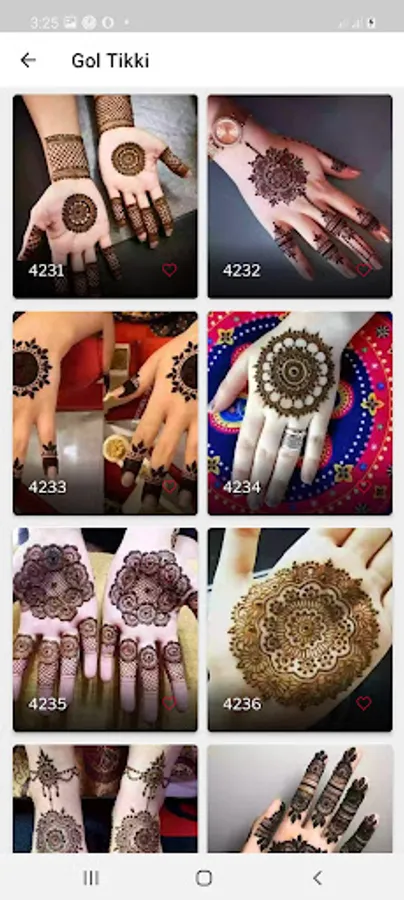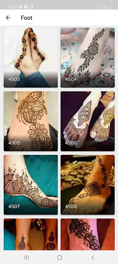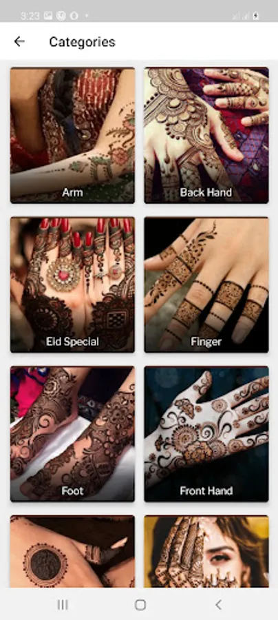 The categories of Mehndi designs made by henna that are included in this applications are: