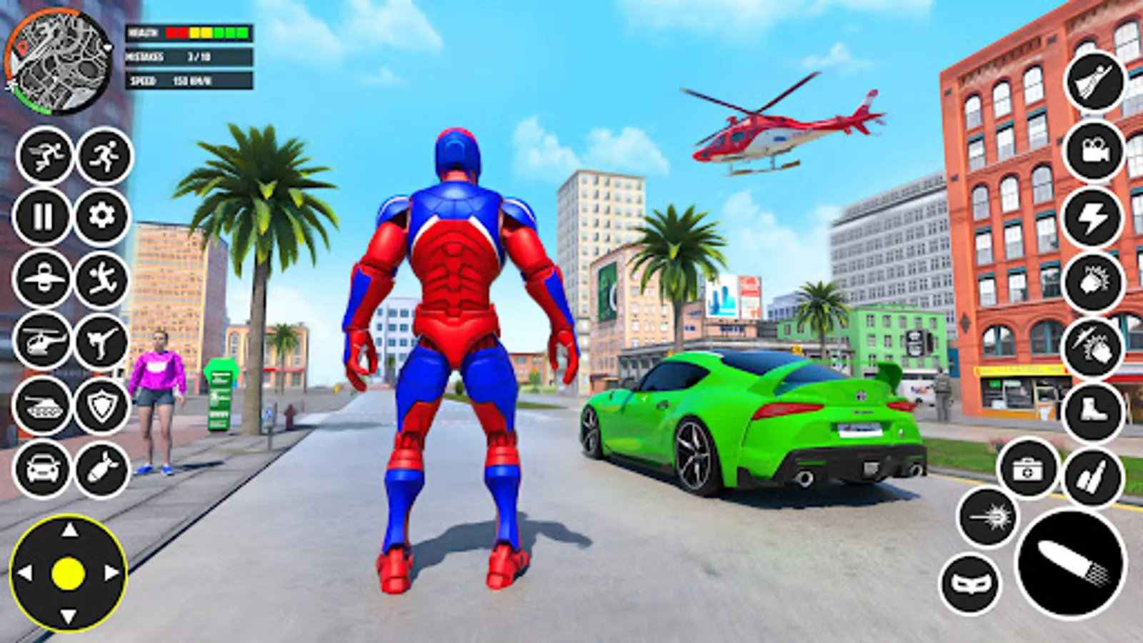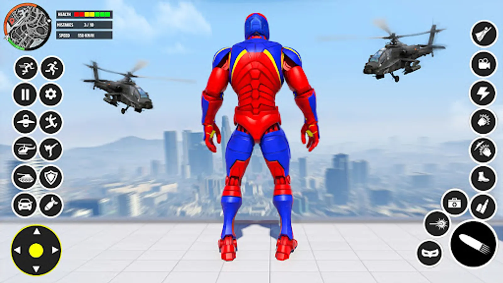 Let's play the Flying Robot Hero Game and Superhero Rescue Mission Game within the realm of flying hero games and Spider Superhero flying games. This real flying hero acts as a Spider Rope Hero and is here to take on the challenges of a flying superhero rescue animals, people, helicopters, buildings everything in a flying robot simulator game. Flying Robot Game and Spider Superhero Man Game as человек-паук embark on a mission to save the city from multiple crimes. Showcase your skills as a spider robot hero in a flying hero rescue game.