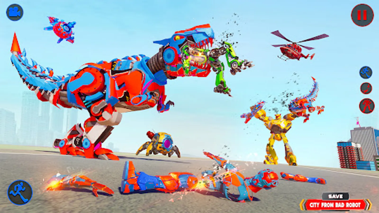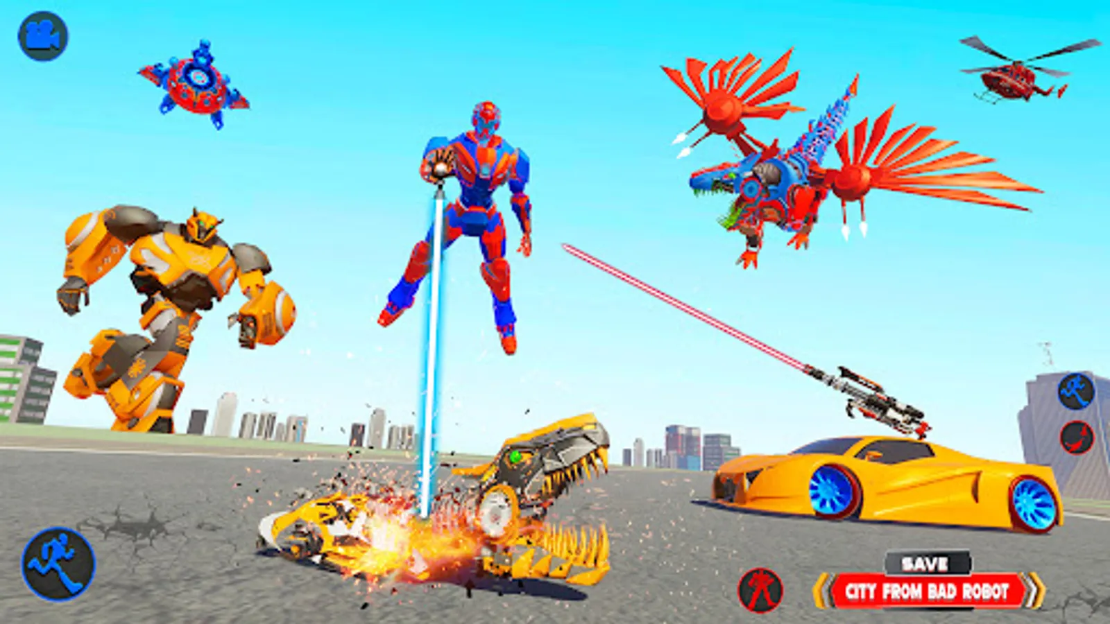 Your main task is to handle flying dinosaur robot very carefully to survive and complete your missions and objectives in dino robot car transformation. It is dragon robot and bike robot out there and your duty is to fight with mech Warriors and dino robot warriors and help civilians in Dino Robot Car Transform Games. You can be a really good fighter of flying dragon robot game who can transform into any kind of robot-like Dragon robot transforming, Tank robot, Mech Robot, Shark Robot as well. We are working really hard so we can bring you a real physics system that we have built in this Dino Robot Car Transform Games. This is a very easy to play and also some challenging mission in flying dinosaur robot games.