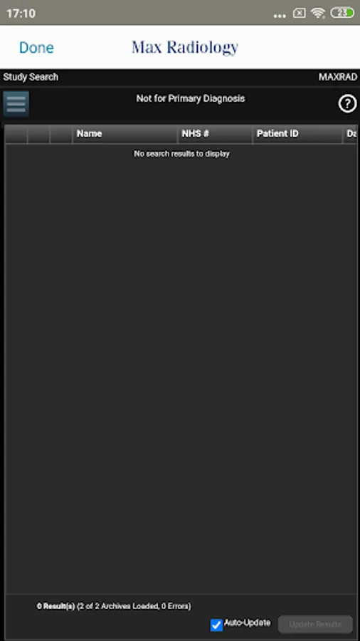 Max Radiology Mobile Application enables doctors to access medical records. Doctors will have to be authenticated first by entering their user name and password and then clicking “LOGIN” button. Upon successfully authenticated with their credentials, the doctors will be presented with a search screen with any one of the following two options: