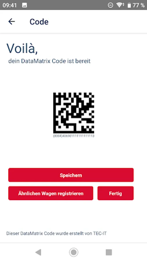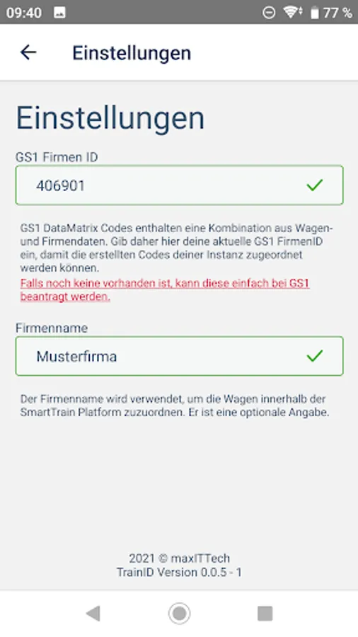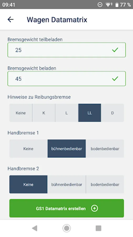 The data is now transferred to the SmartTrain Platform, and the app also generates a GS1 DataMatrix code to identify the wagon / locomotive at the same time.