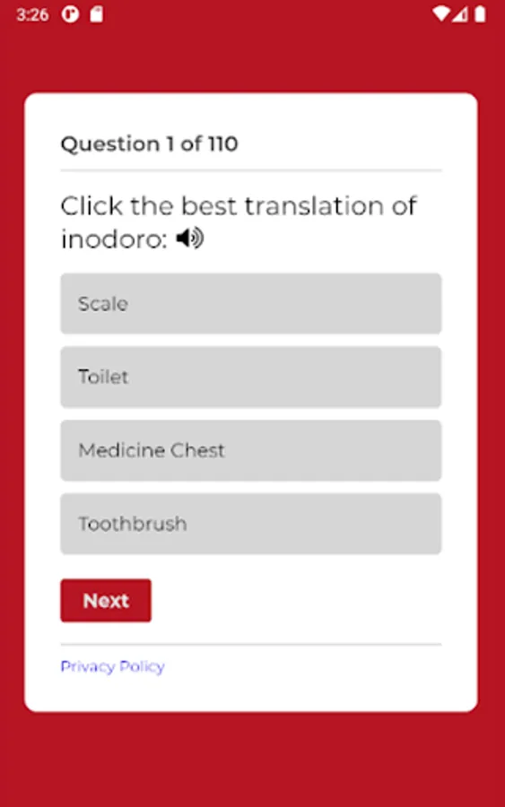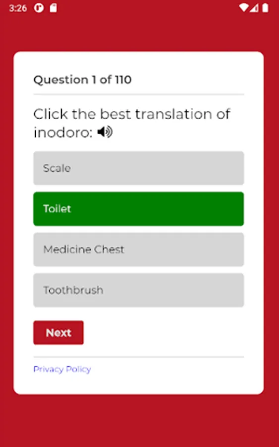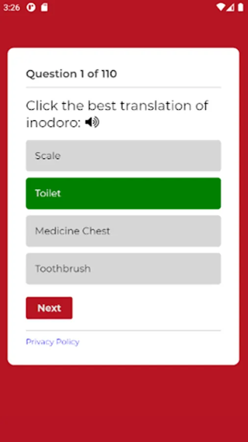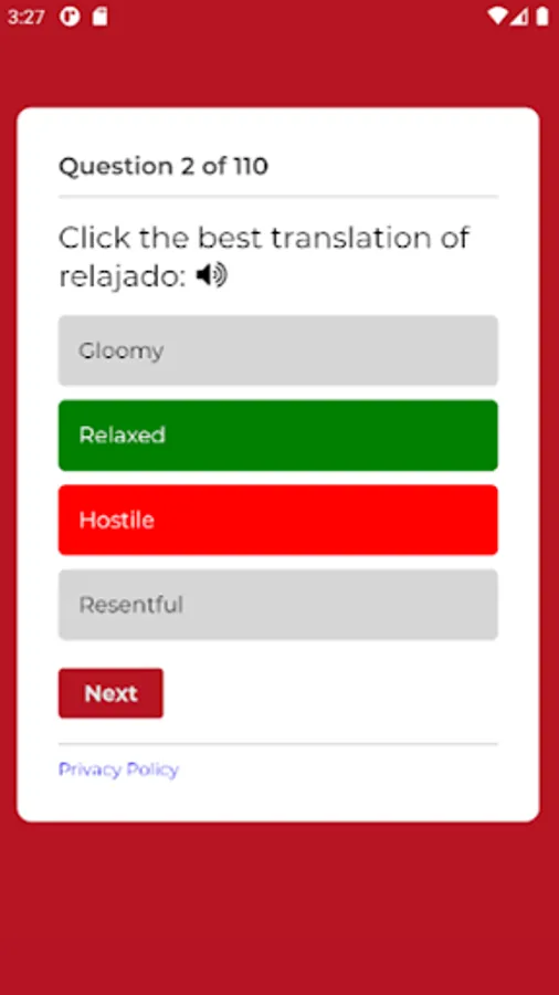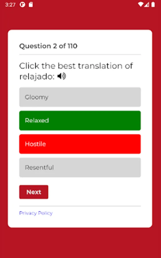 ➜ Play “Spanish vocabulary quiz”, choose one of 4 offered answers;
