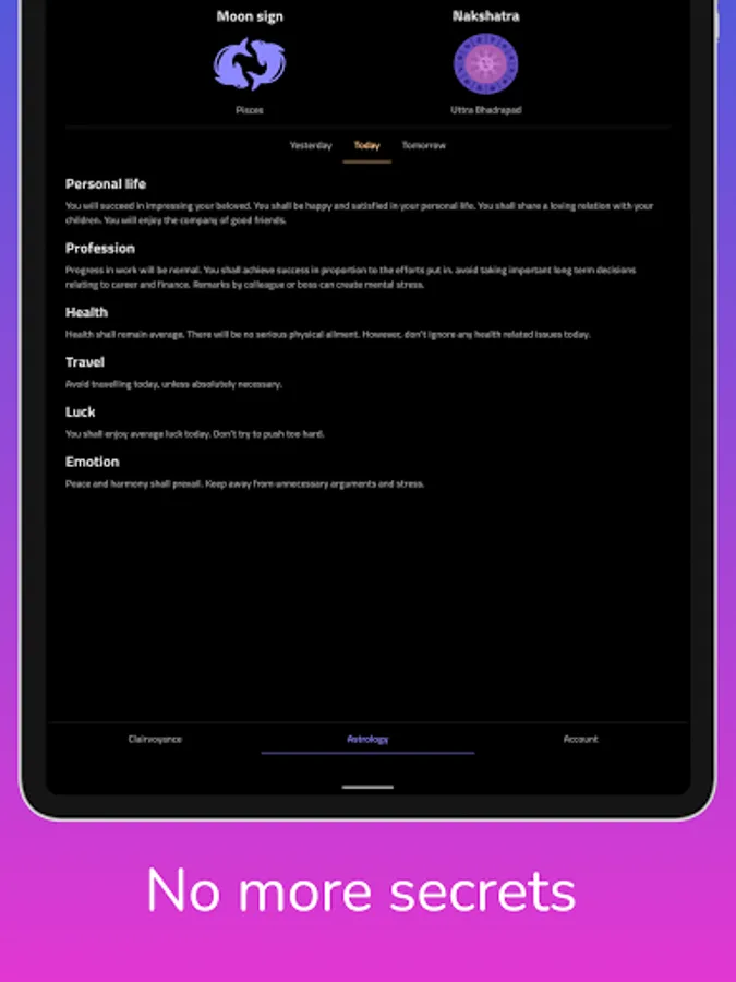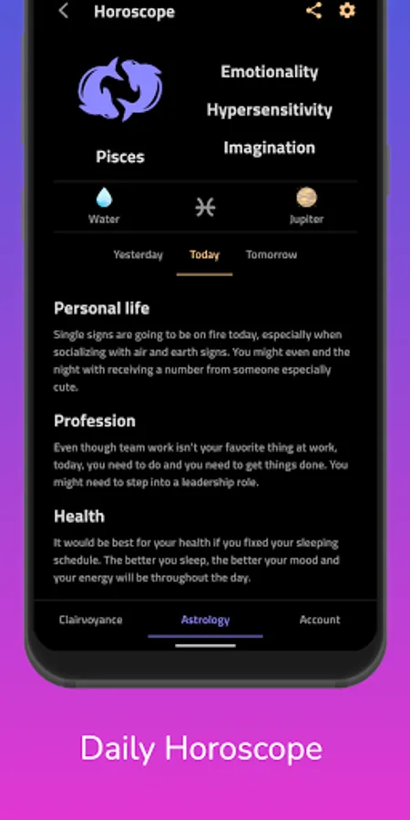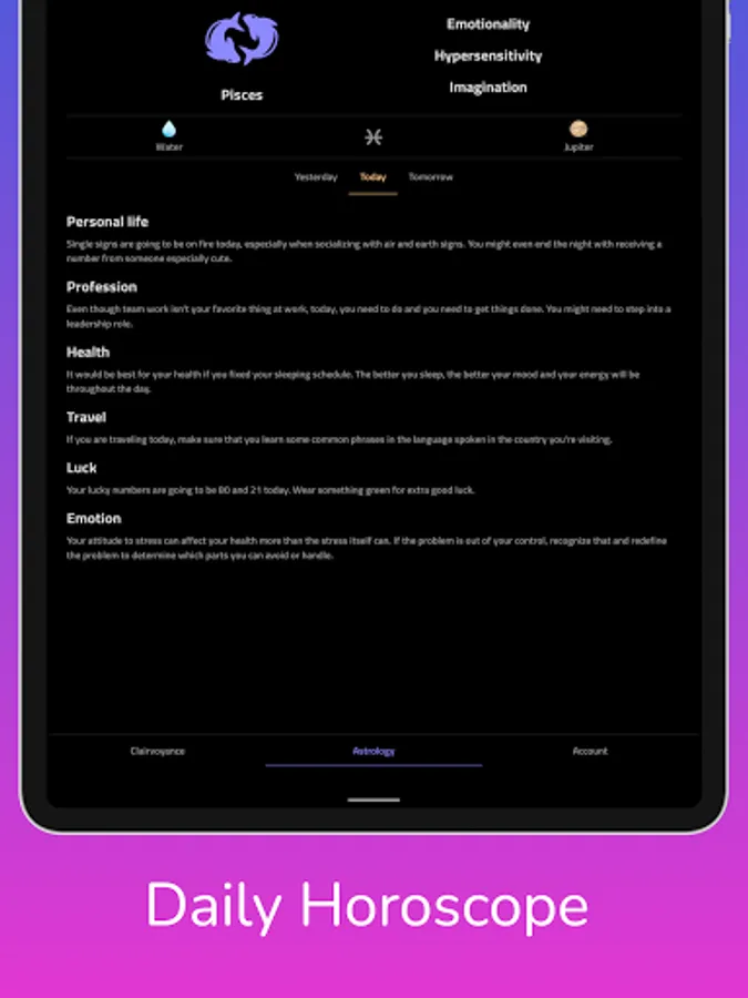Check your free horoscope of today, tomorrow or yesterday on your phone or tablet!