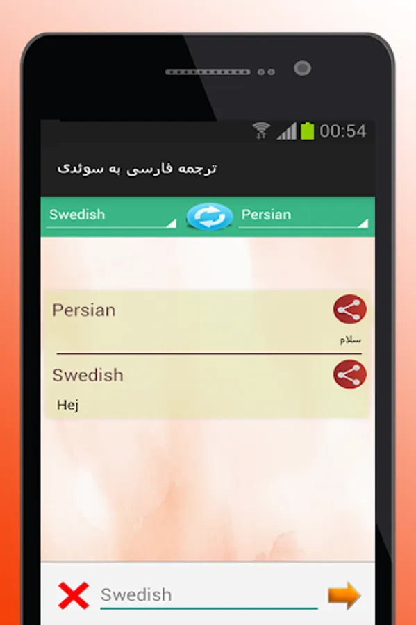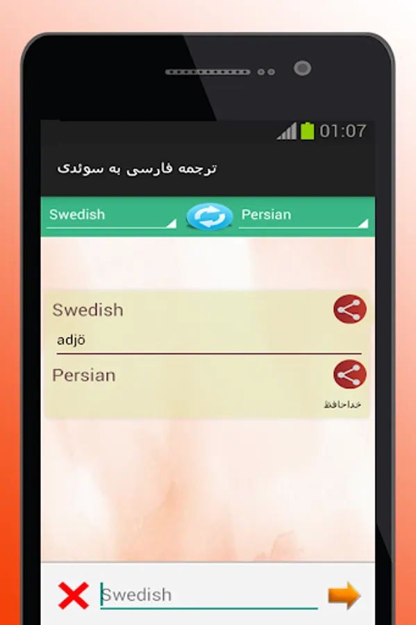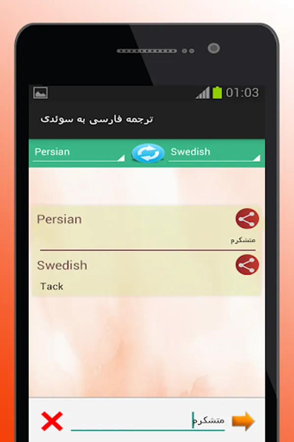 This free application is able to translate words and text from Persian into Swedish and from Swedish to Persian.