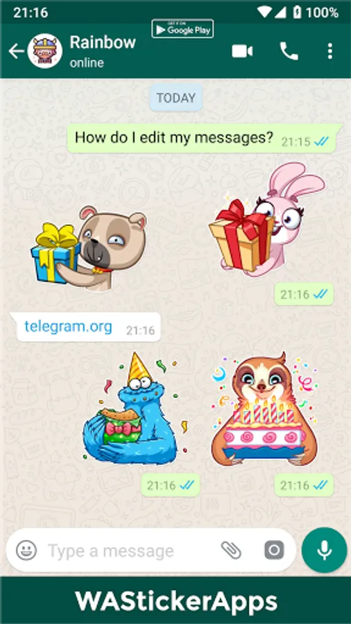 The Telegram stickers in this app are published with permission from Telegram, obtained at stickers@telegram.org