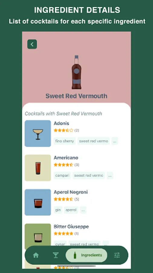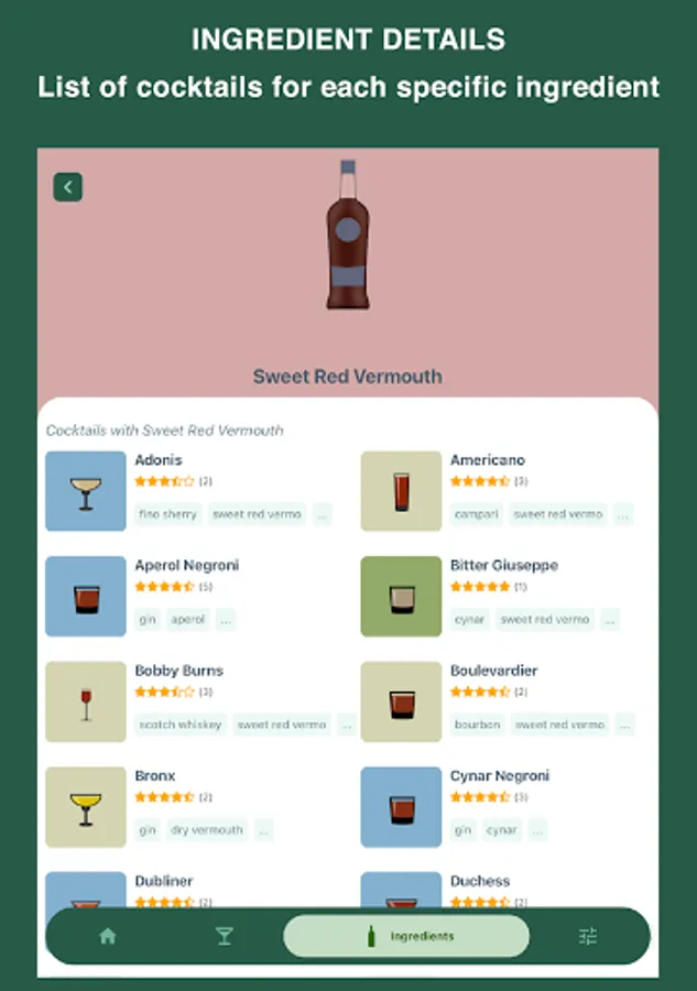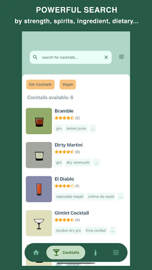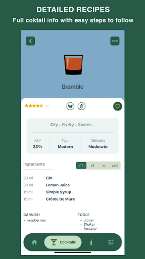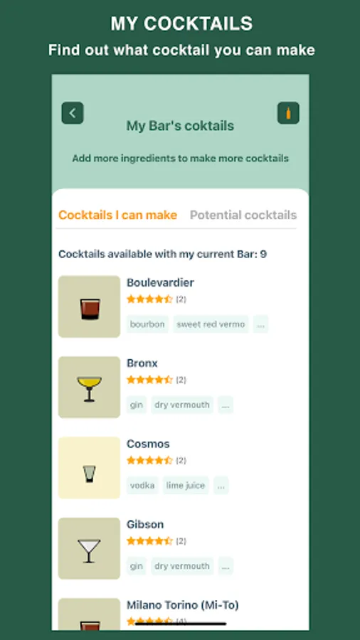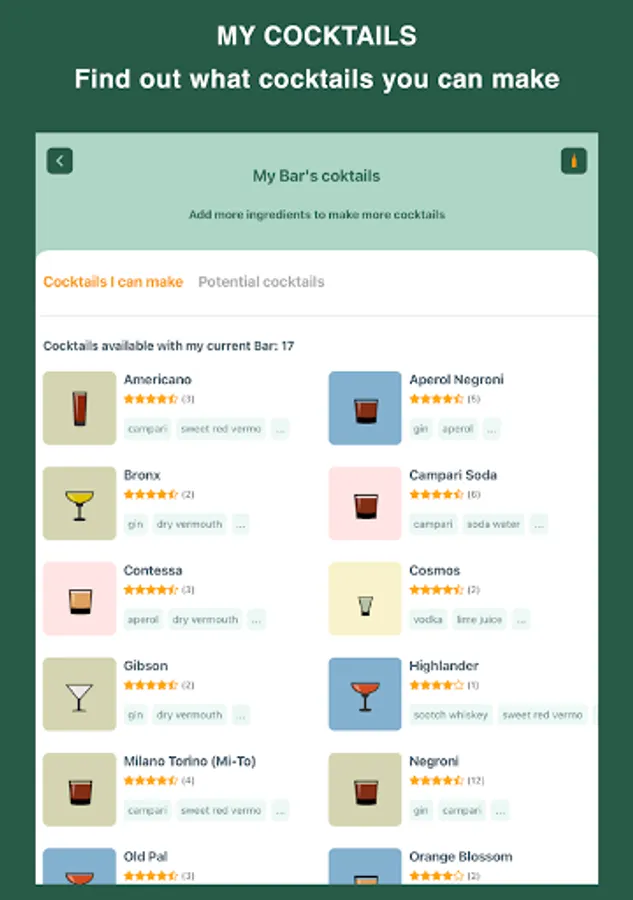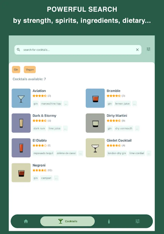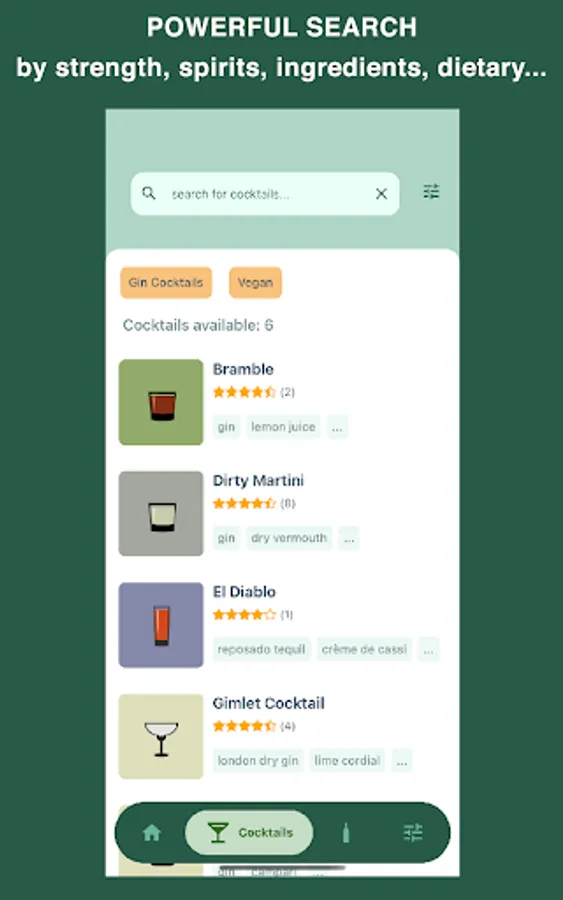 - access hundreds of cocktail recipes from real bartenders in multiple languages