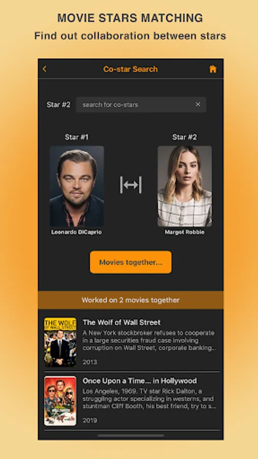 Co-star Search allows you to match any of 2 movie stars (actors, directors, etc.) and check on which movies they worked together.