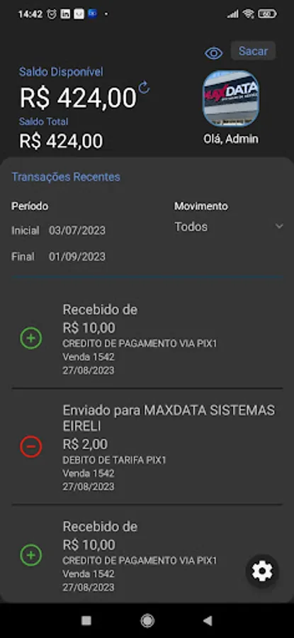 Manage and Open your MaxData Digital account and have control of Transactions Received via PIX, using our system.