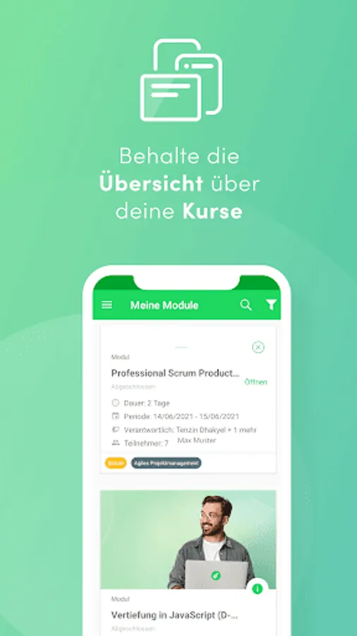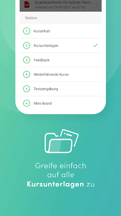 * Greife jederzeit und von jedem Gerät aus auf deine Kursinformationen und Kursunterlagen zu.