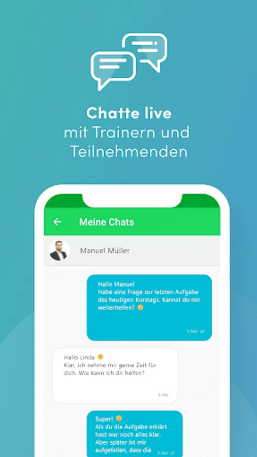 * Nutze die Chat-Funktion, um dich mit anderen Teilnehmenden auszutauschen, Fragen zu stellen oder um Netzwerke zu knüpfen - und profitiere von einer Community, die dich bei deiner Lernreise begleitet.