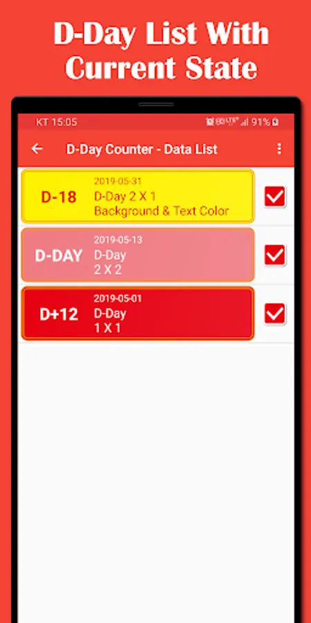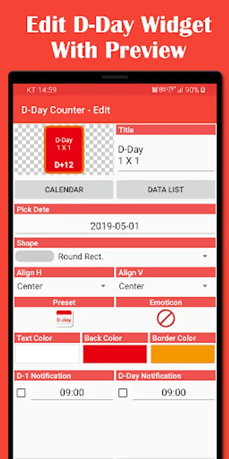 1) You can set an alarm that is displayed in the notification bar in the specified time of D-Day or D-1.
