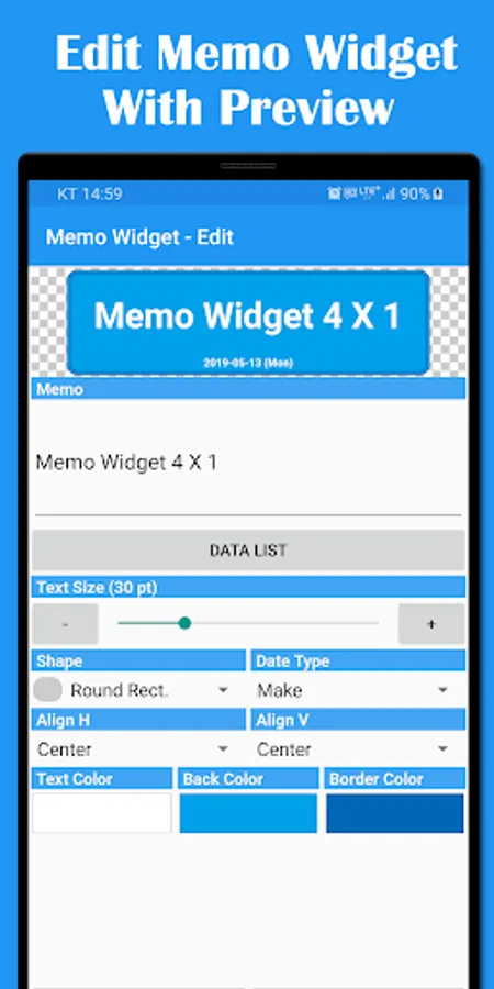 It is Widget applications that to display simple memo, remaining or past date on the Home screen.