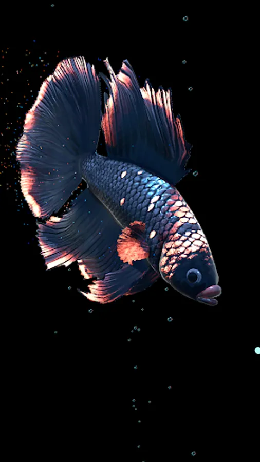 Betta fishes have many types of shape, colors, details. This wallpaper have many options (in full version) to change fish colors, details, lights, background colors.