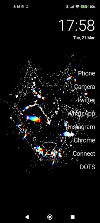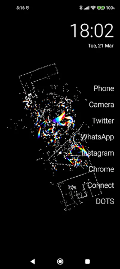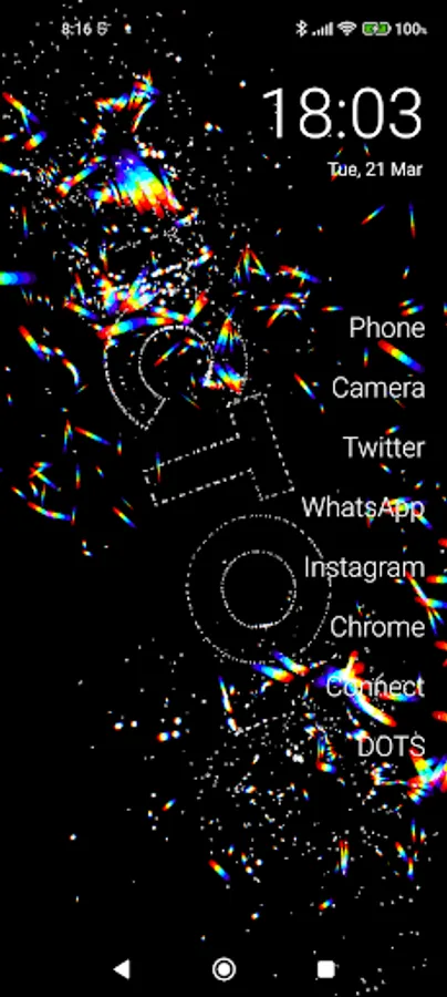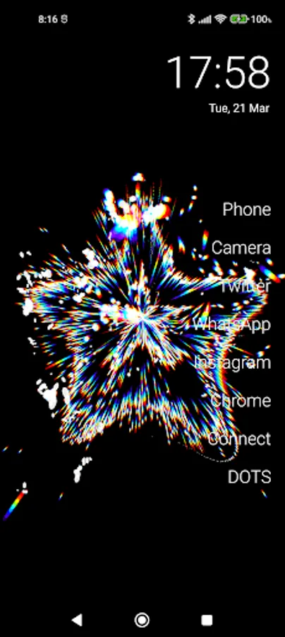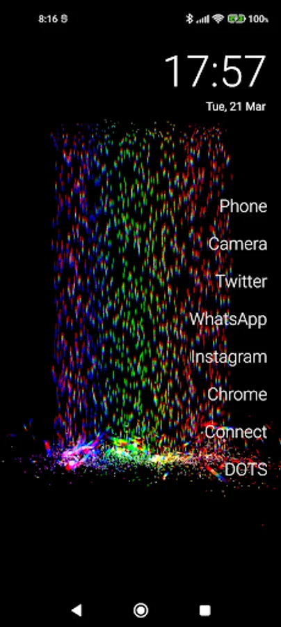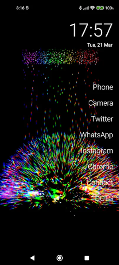 Dots exploding colors ! :) You can set shapes , words, letters, digits... and click on screen and... BOOM !