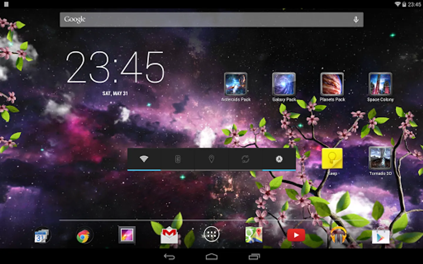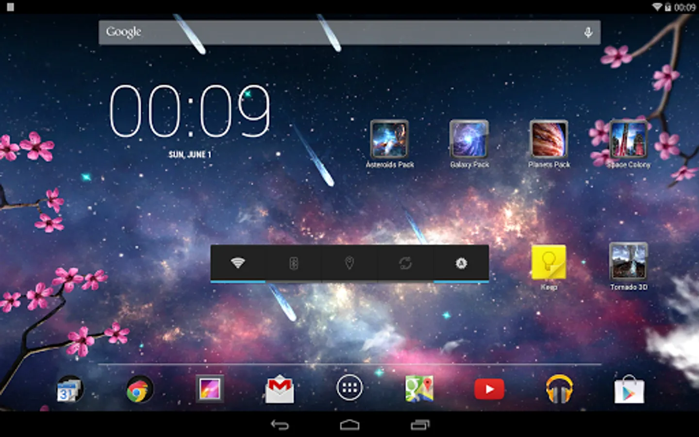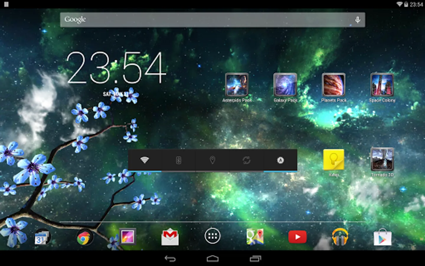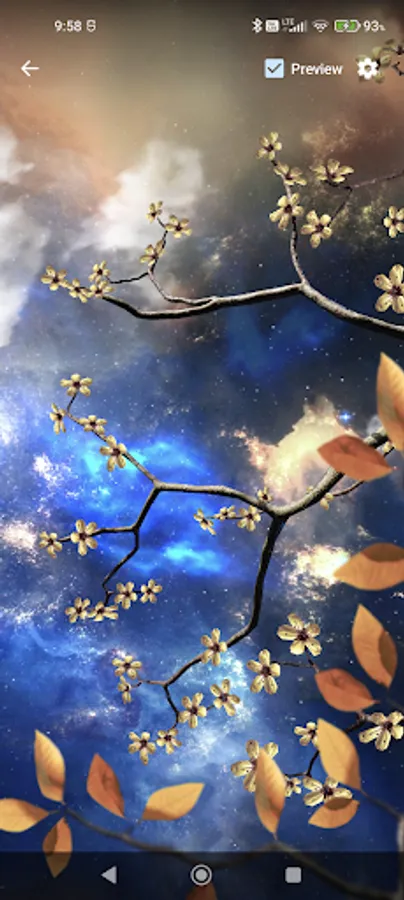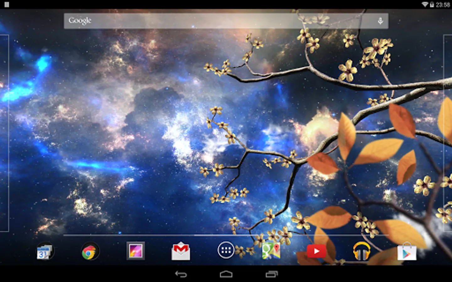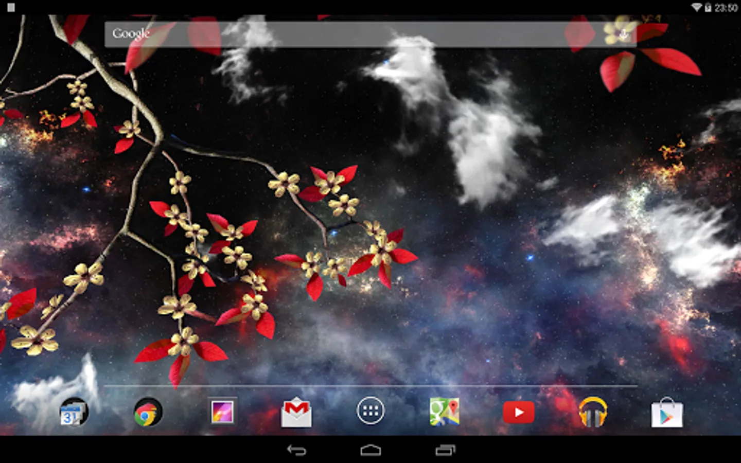In this livewallpaper you may see fully 3D Skies. Dynamic clouds, wind, meteors, leaves, flowers, and more. You may changes colors, scenes and many other options (see video).