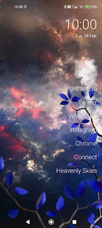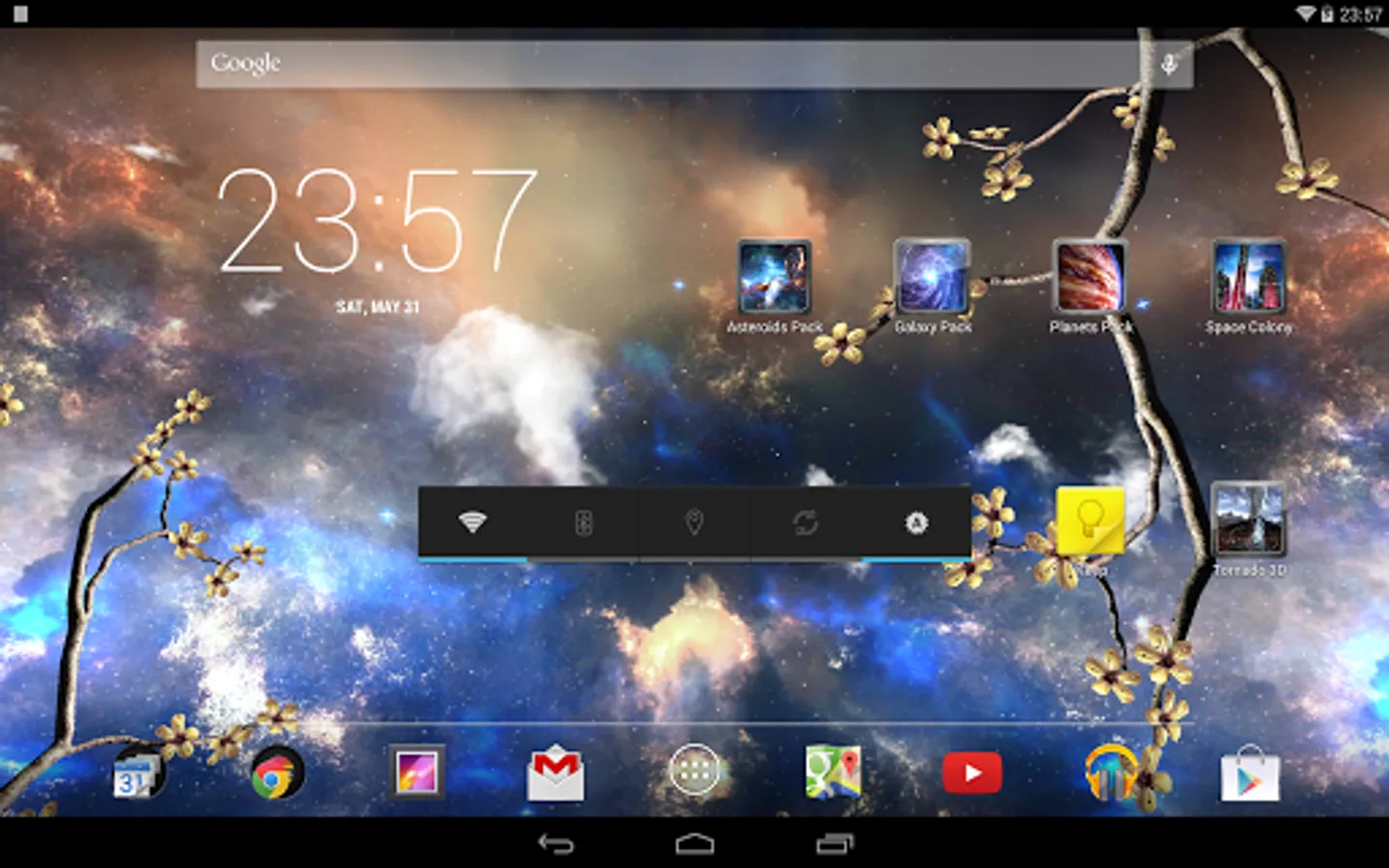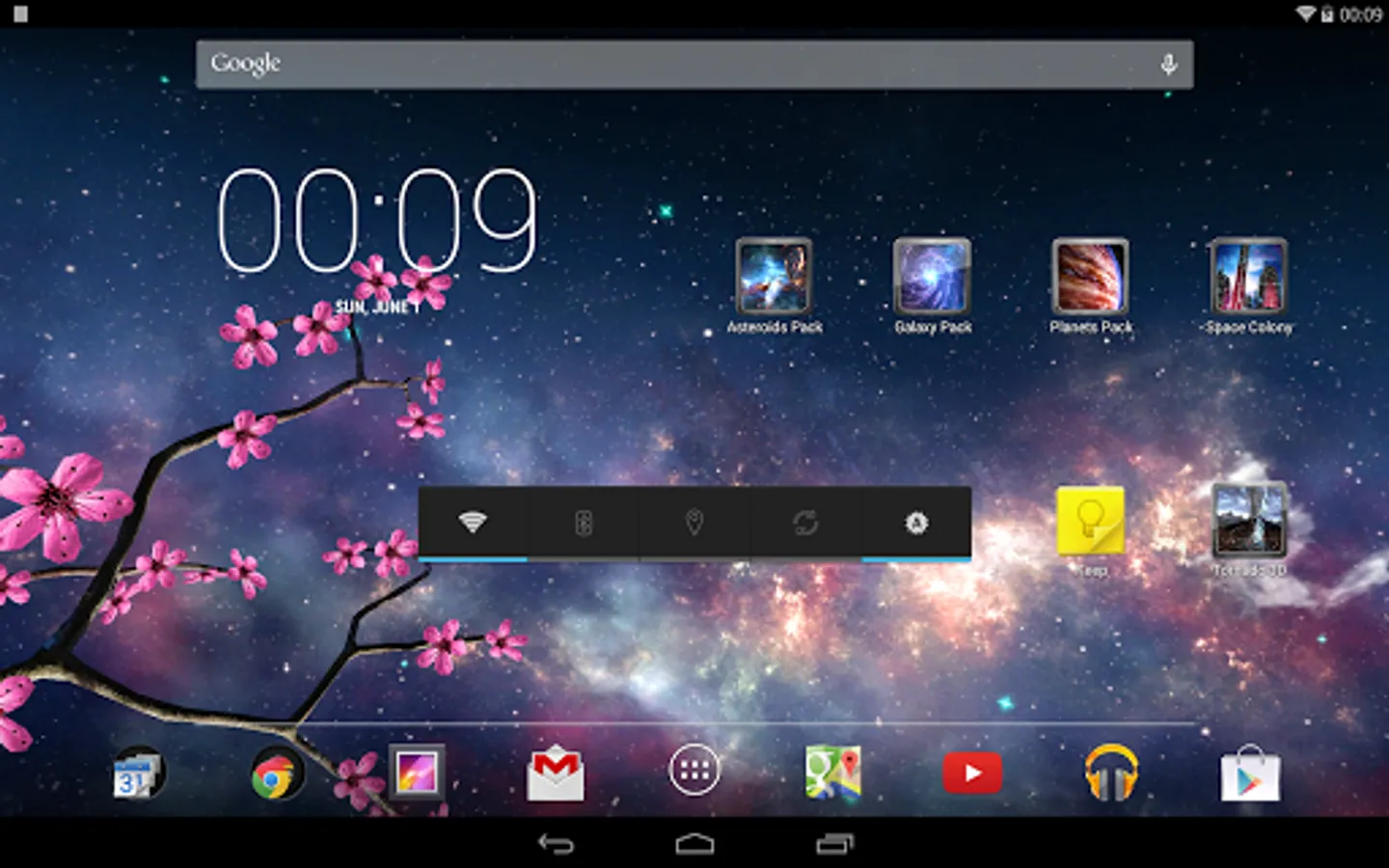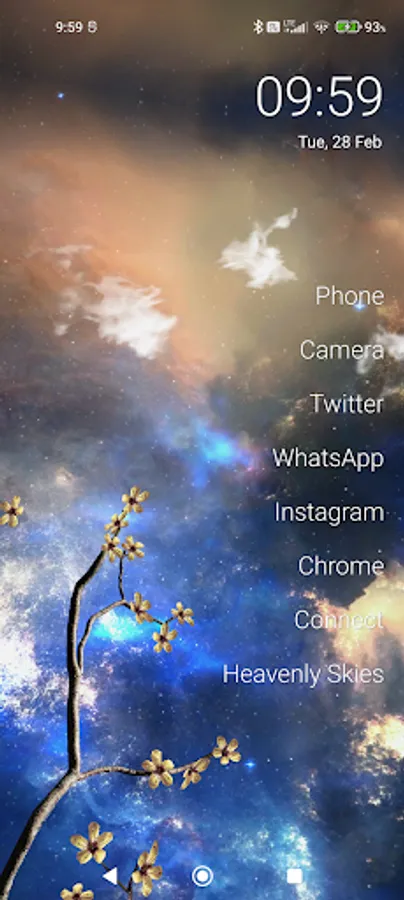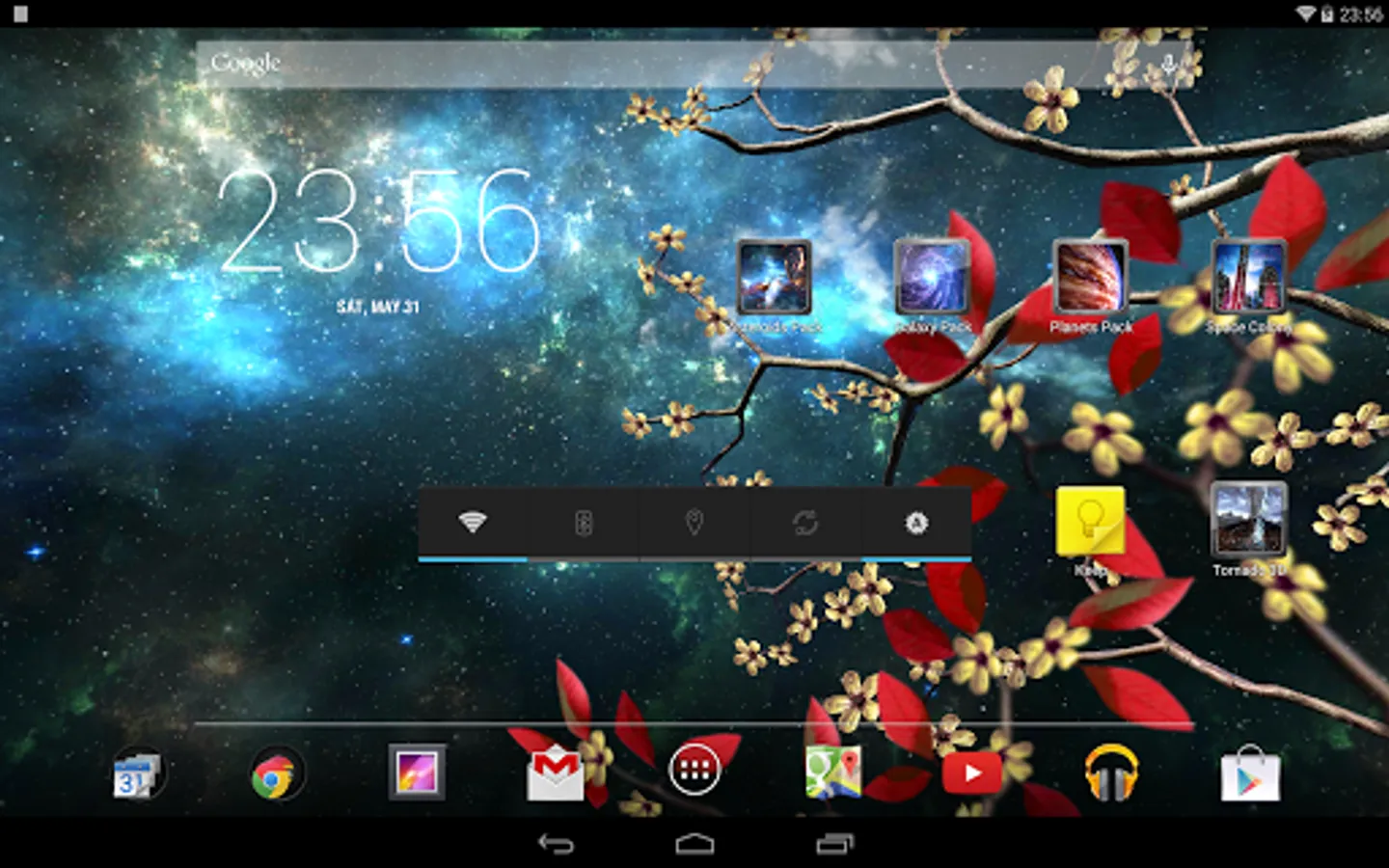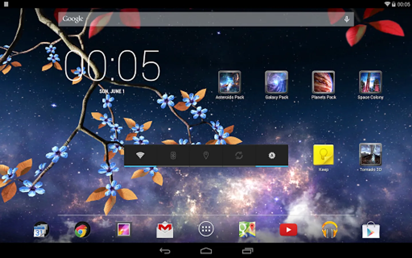 In this livewallpaper you may see fully 3D Skies. Dynamic clouds, wind, meteors, leaves, flowers, and more. You may changes colors, scenes and many other options (see video).